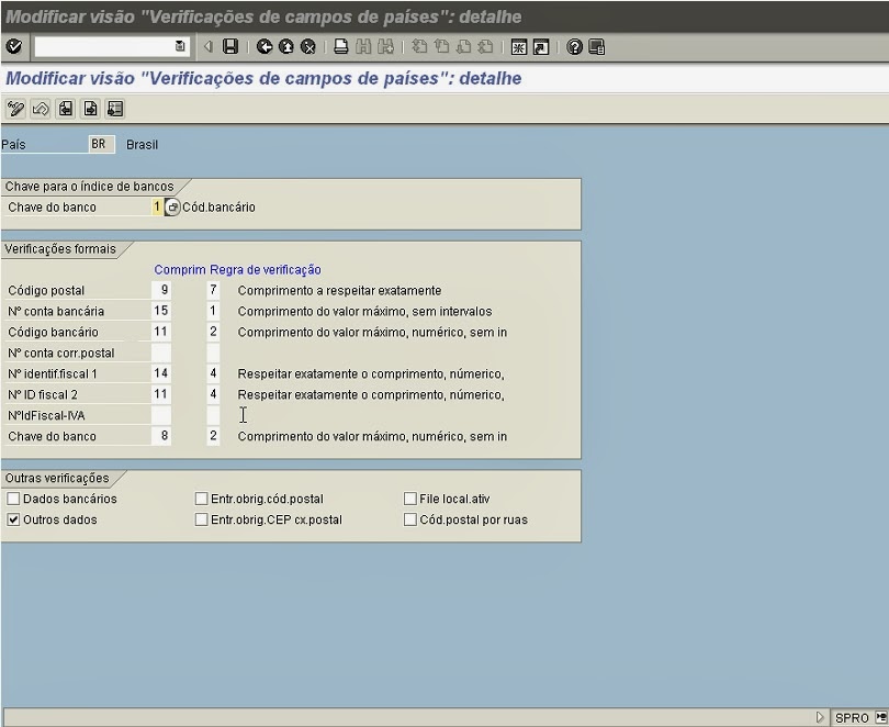 - Atualizar para cada país a tela de detalhecorrespondente. Na tela de detalhe é necessário, p.ex., gravar as regras de verificação.